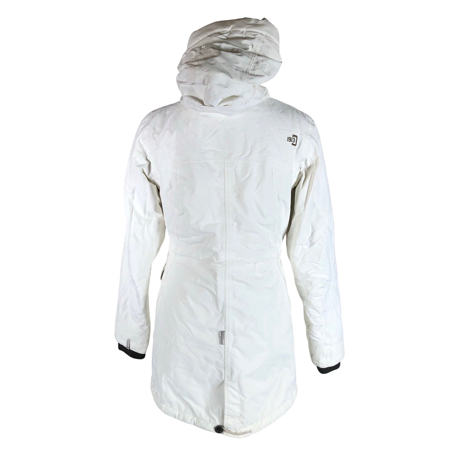 Tuotteessa on huppu. Kiristysnauha vyötäröllä. Tuotteen pinnassa on hieman tummentumaa. Tuotteen pinnassa on hieman pesu-/käyttökulumaa. Yleisilme on siisti.