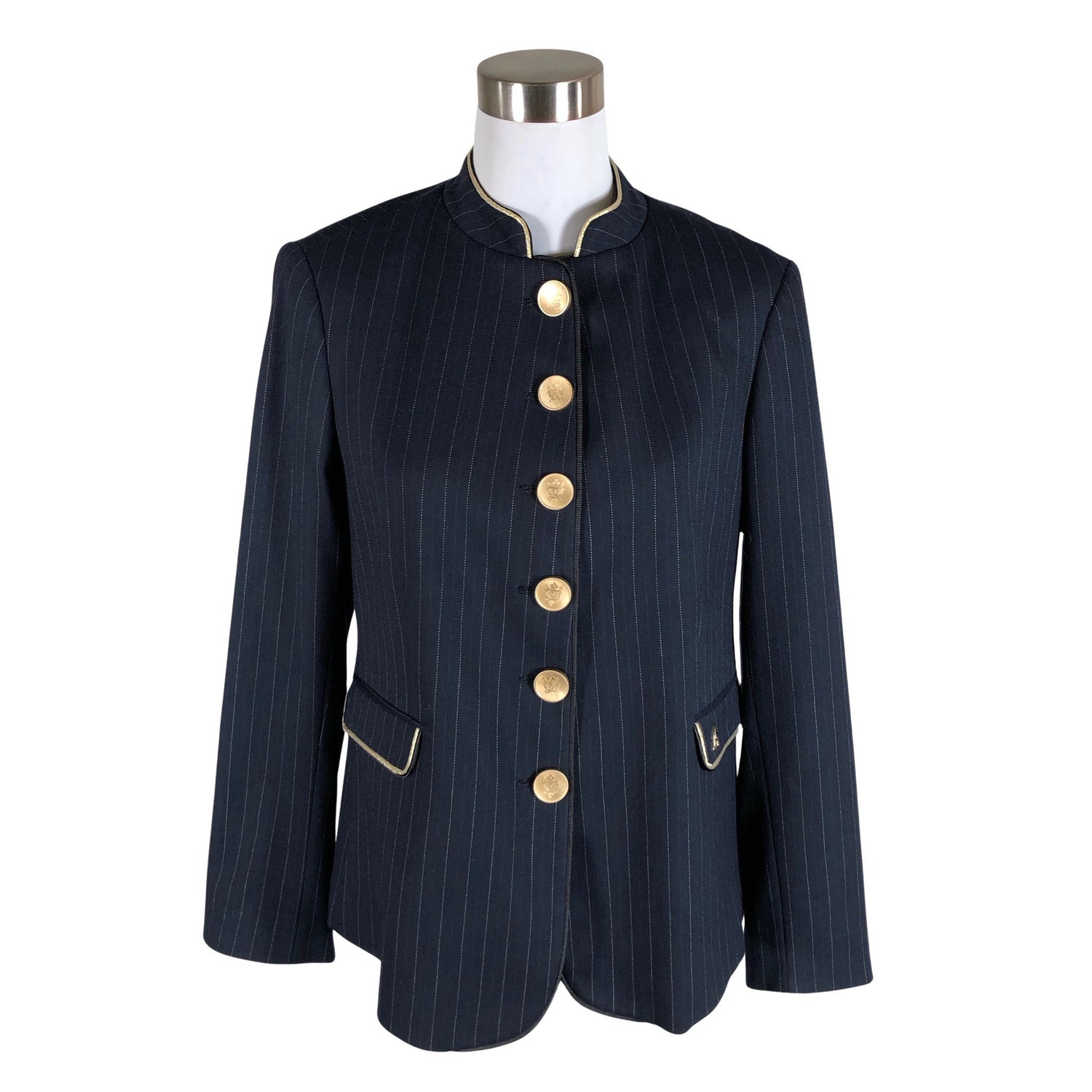 Setti. Liituraitakuosi. Kauluksessa on aavistus kulumaa. Tuote on muilta osin hyvässä kunnossa.