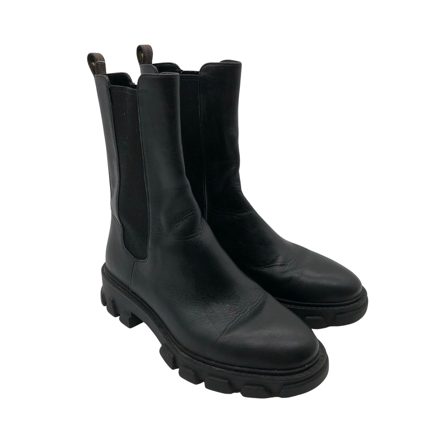 Nahkaa. Varsi joustaa hieman. Tuotteen pinnassa on aavistus pesu-/käyttökulumaa. Yleisilme on siisti.