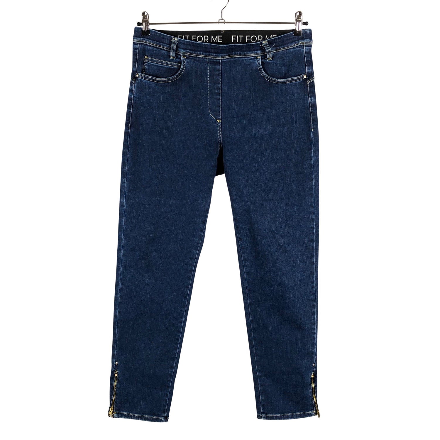 Malli: Fit for me. Kulutettu kuosi. Joustava vyötärö. Vetoketjut lahkeissa. Materiaali joustaa. Tuotteen pinnassa on aavistus pesu-/käyttökulumaa. Yleisilme on siisti.
