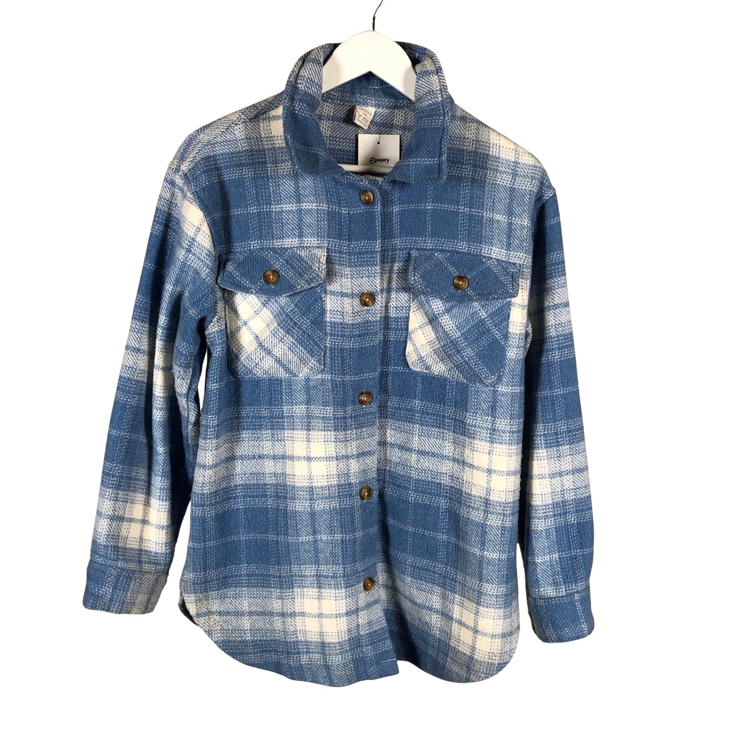 Paitatakki. Edessä napit. Sivusaumoissa on halkiot. Tuotteen pinnassa on hieman pesu-/käyttökulumaa. Tuotteen pinnassa on langannousu/langankiristymä. Tuotteen pinnassa on hieman nukkaa. Yleisilme on siisti.