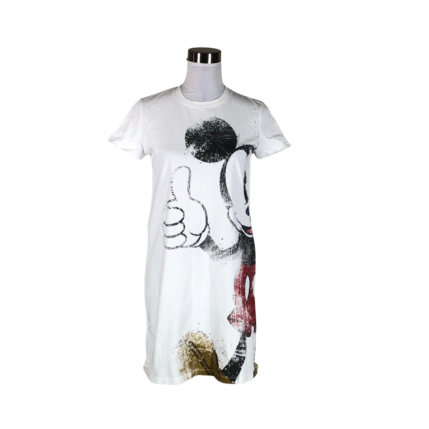 Mallisto: Desigual x Mickey Mouse. Materiaali joustaa hieman. Kauluksen sisäpuolella on hieman tummentumaa. Lähtee todennäköisesti pesussa. Tuote on muilta osin hyvässä kunnossa.