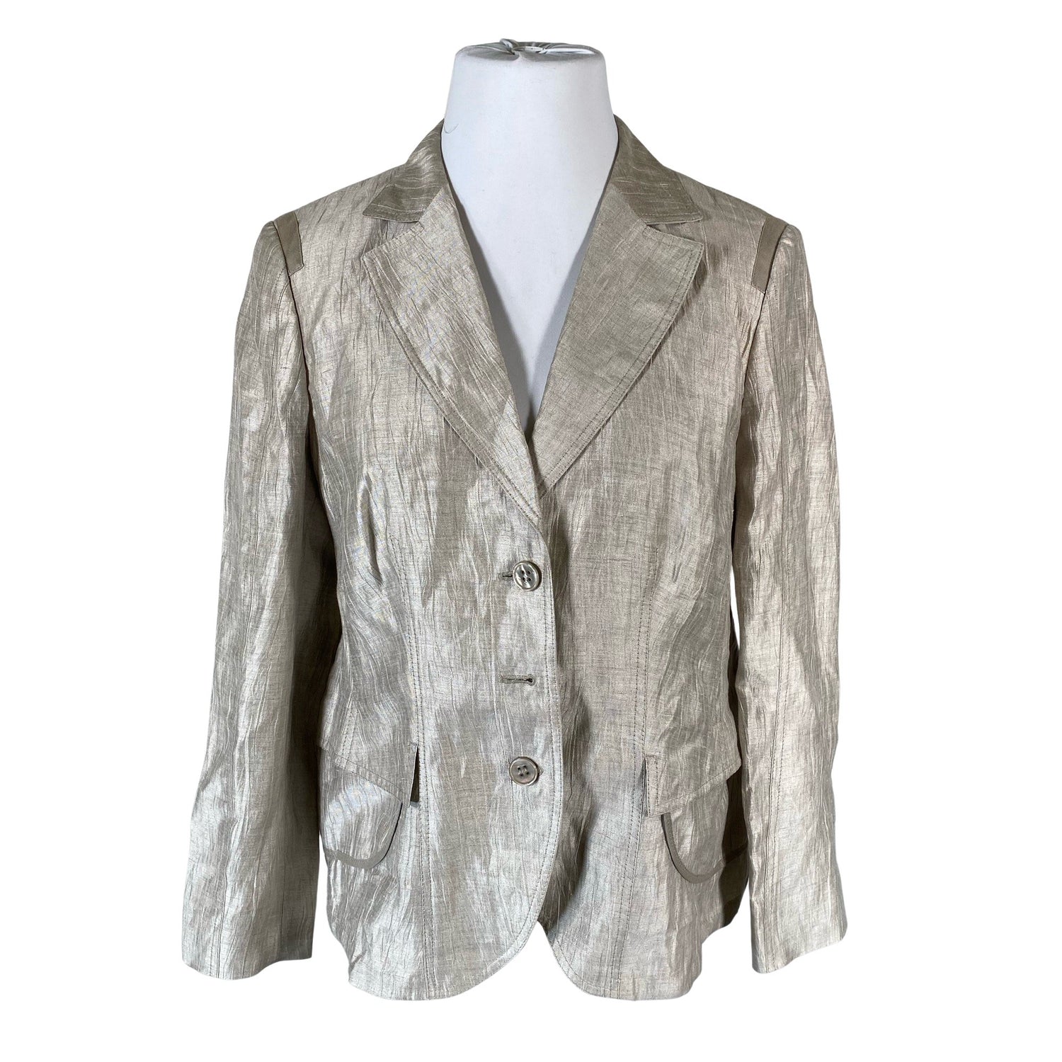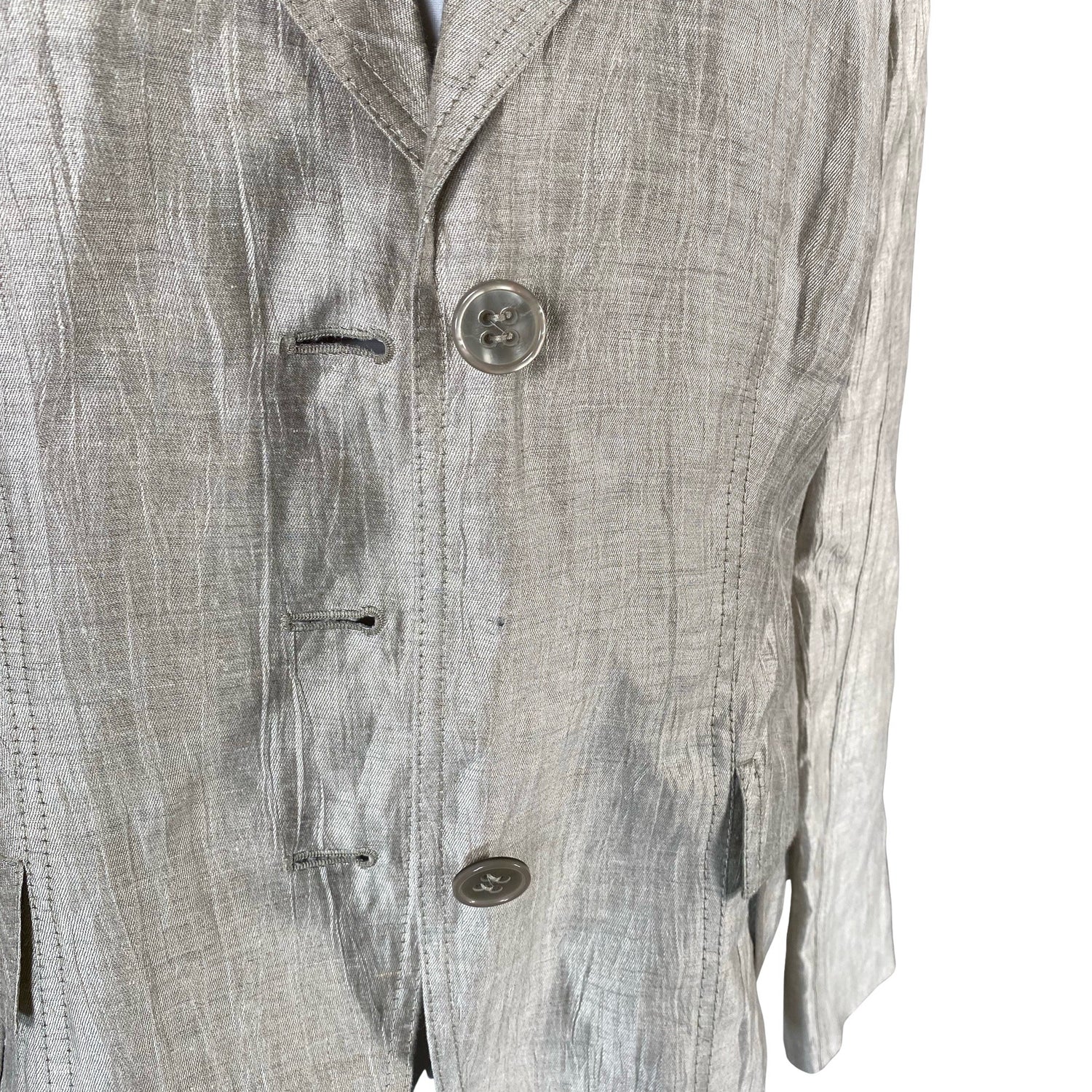 Pellavasekoitetta. Olkatoppaukset. Tuotteesta puuttuu nappi/nappeja. Ei vaikuta käyttöön. Katso lisäkuvat.