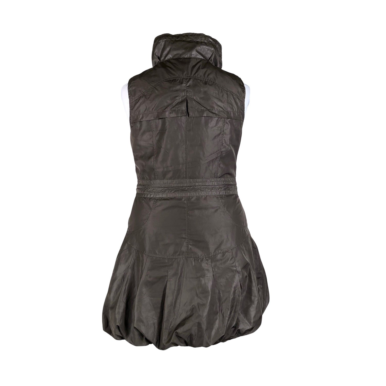 Korkea kaulus. Kiristysnauha vyötäröllä.