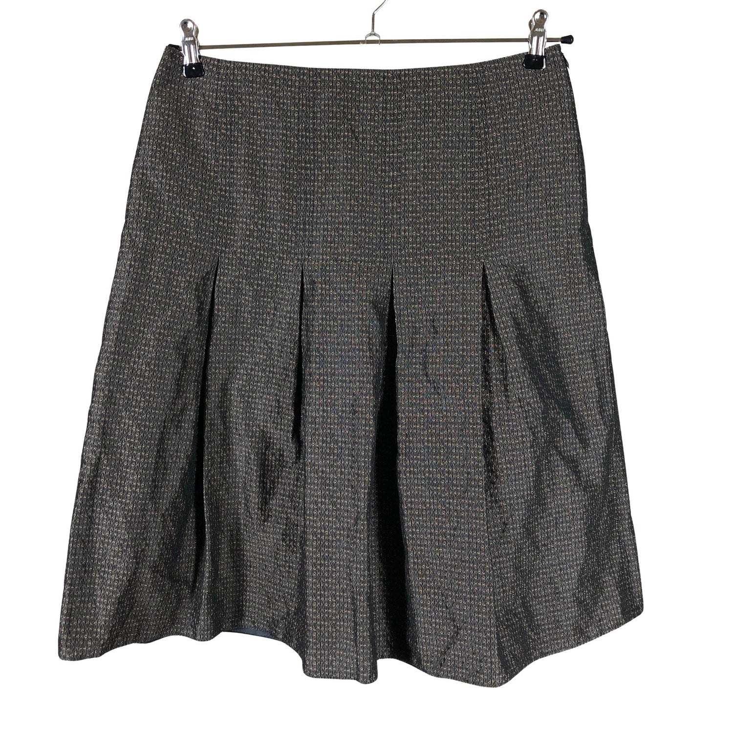 Sivusaumassa on vetoketju. Tuotteessa on ohut vuori. Langassa on kiiltoa. Materiaali ei jousta.