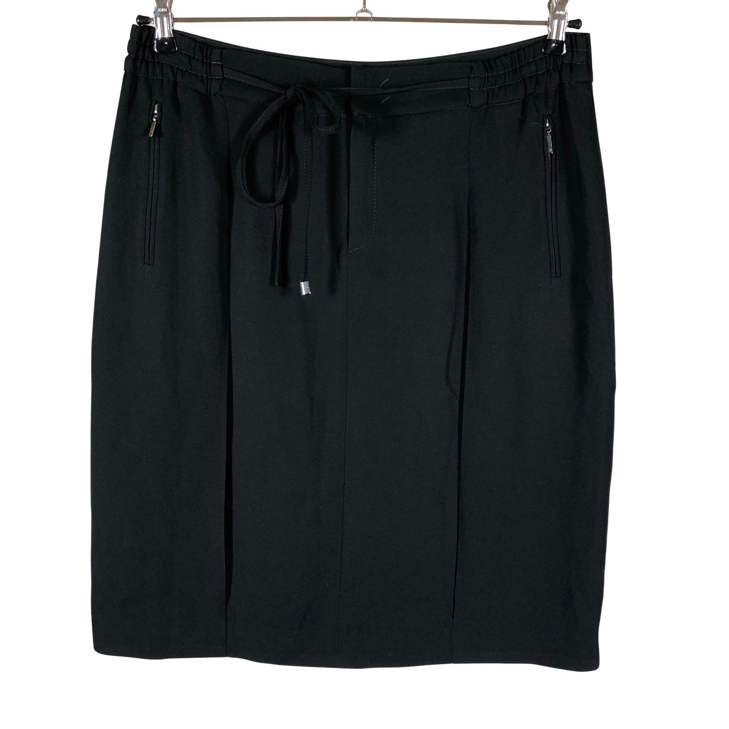Kiristysnauha vyötäröllä. Tuotteen taskuissa on vetoketjut. Tuotteessa on ohut vuori. Laskeutuvaa materiaalia. Materiaali ei jousta. Tuotteen pinnassa on aavistus pesu-/käyttökulumaa. Yleisilme on siisti.