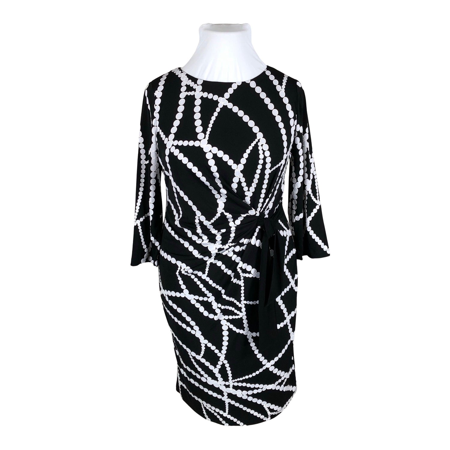 Epäsymmetrinen leikkaus. Materiaali joustaa. Tuotteessa on ohut vuori. Tuotteen pinnassa on aavistus pesu-/käyttökulumaa. Yleisilme on siisti.