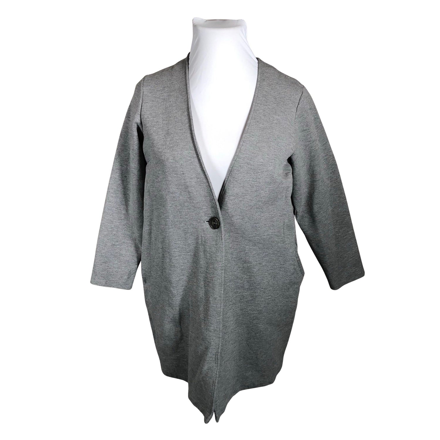 Pitkä malli. Paksua trikoota. Tuotteessa ei ole vuorta. Materiaali joustaa. Vaatteessa on taskut. Tuotteen pinnassa on aavistus pesu-/käyttökulumaa. Yleisilme on siisti.