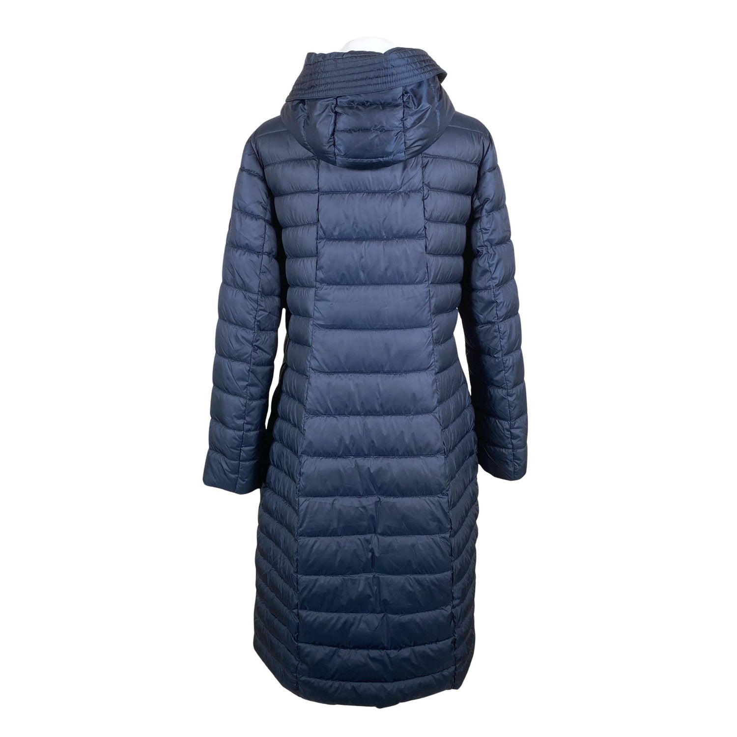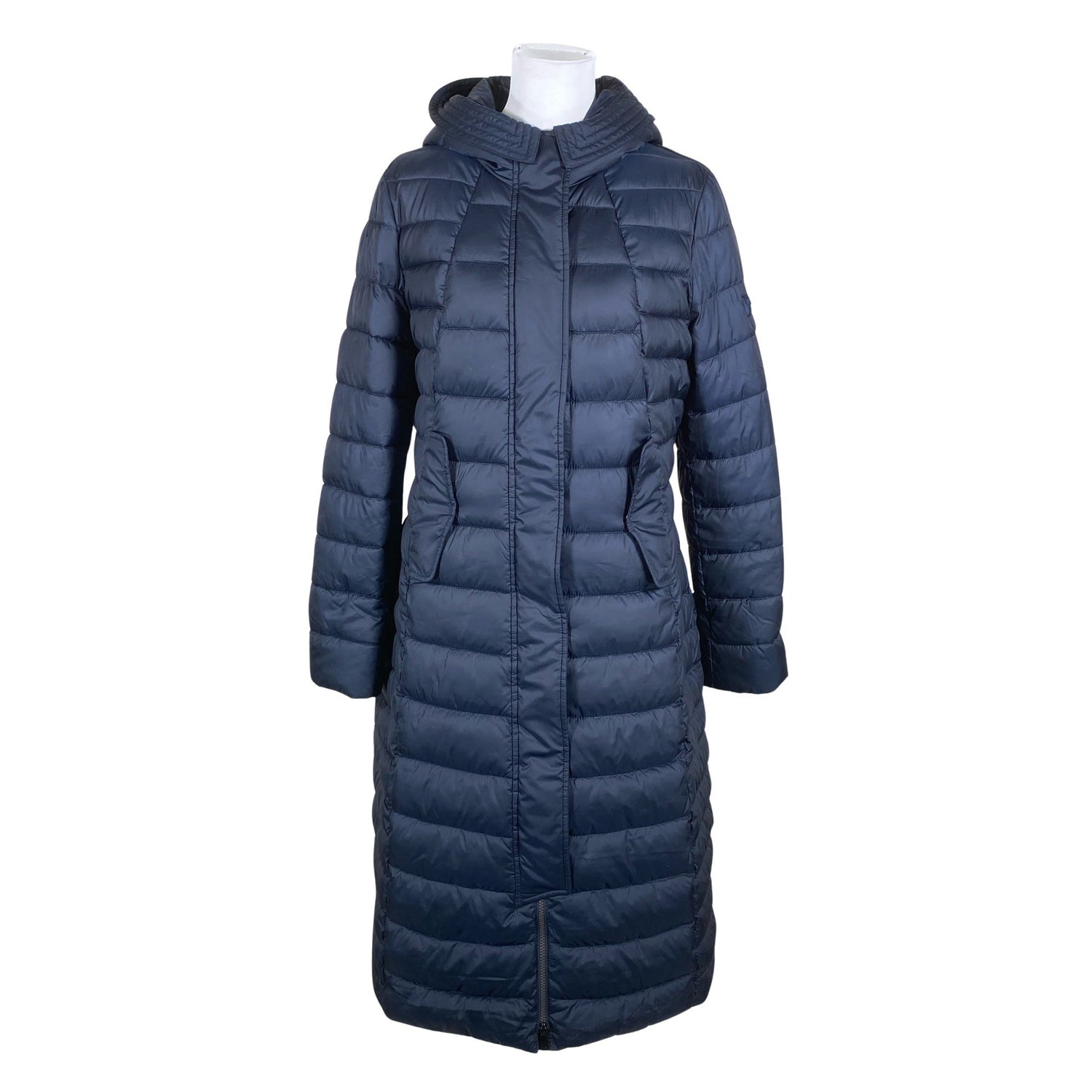 Pitkä malli. Korkea kaulus. Water repellent -merkintä.