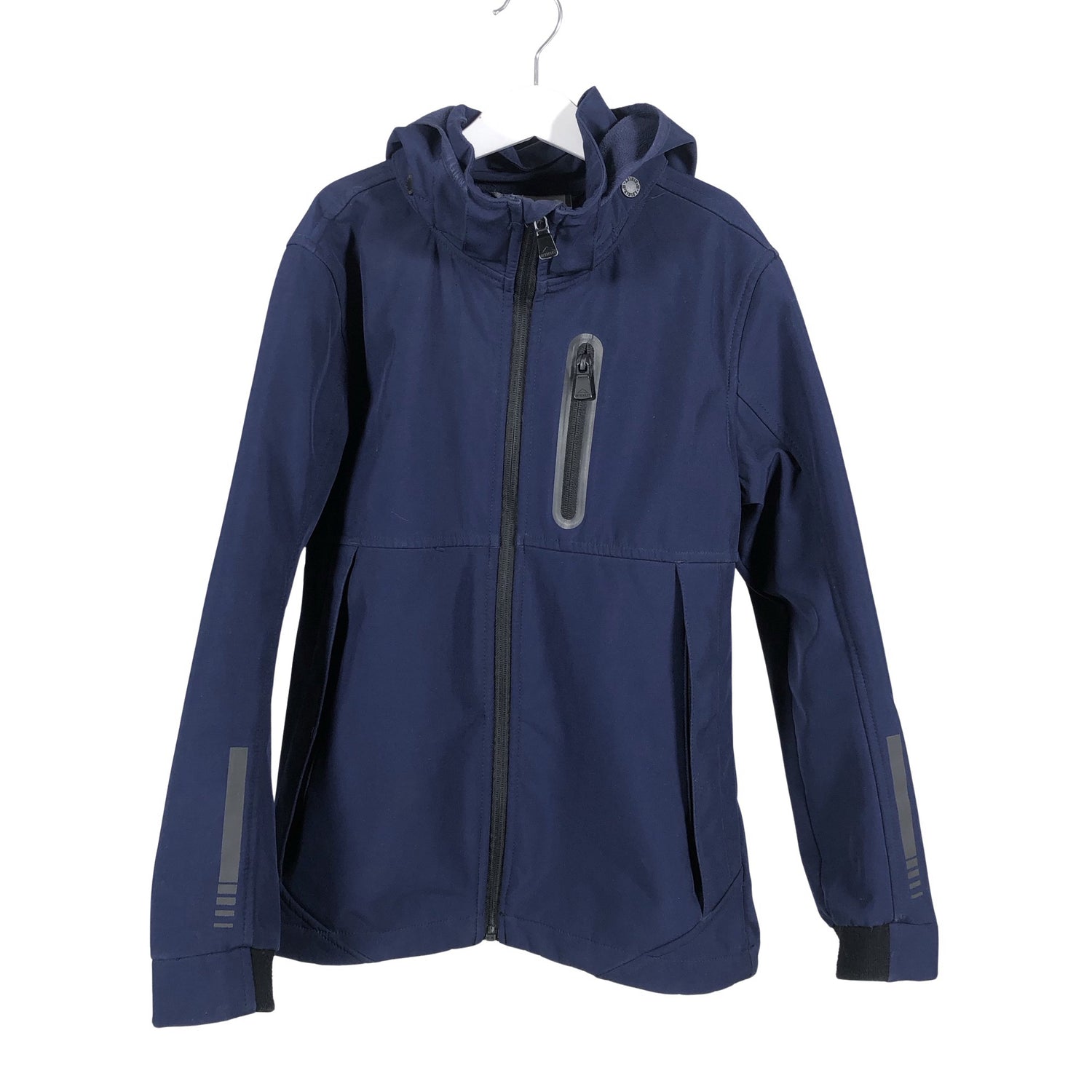 Fleecevuori. Irrotettava huppu. Tuotteen pinnassa on hieman pesu-/käyttökulumaa. Yleisilme on siisti.
