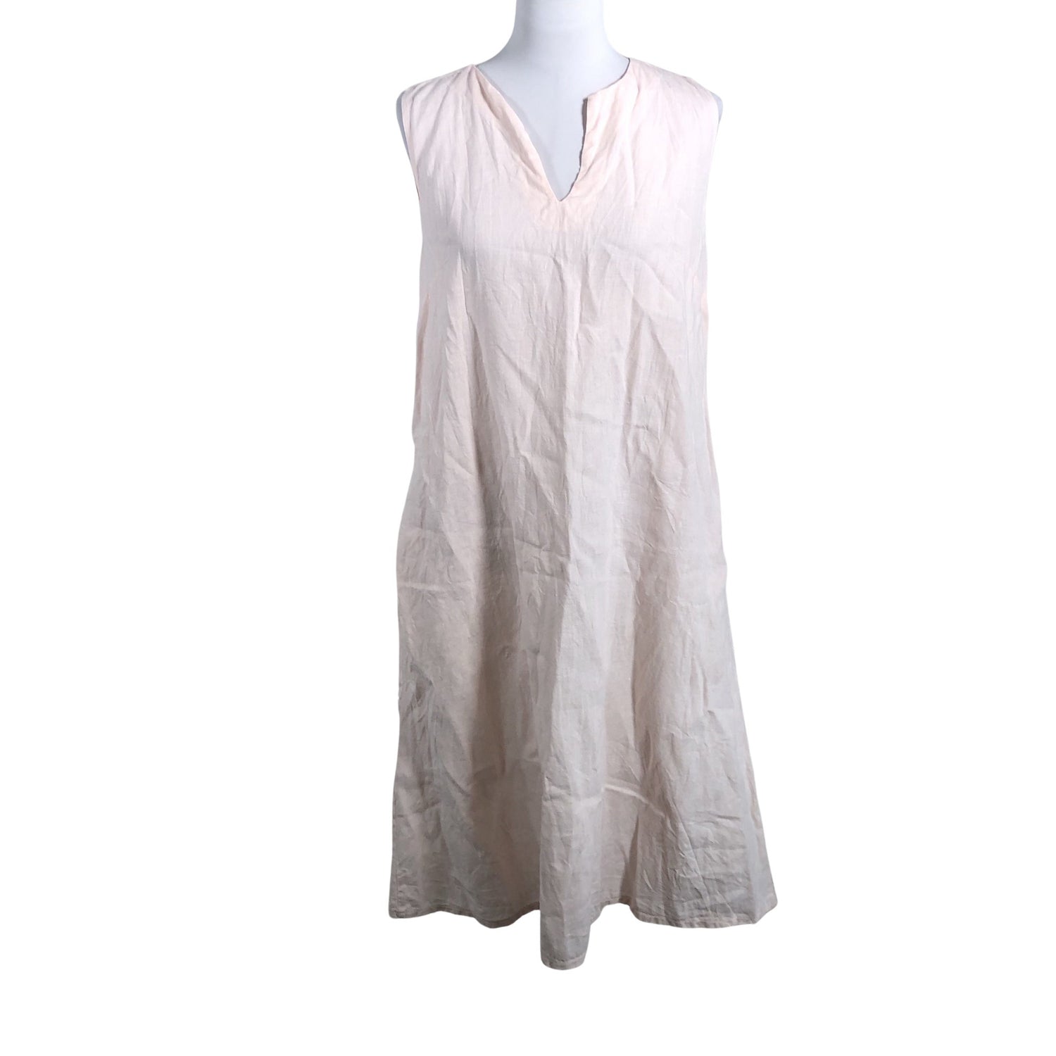 Pellavaa. Vaatteessa on taskut. Tuotteen pinnassa on hieman tummentumaa. Tuotteen pinnassa on aavistus pesu-/käyttökulumaa. Yleisilme on siisti.