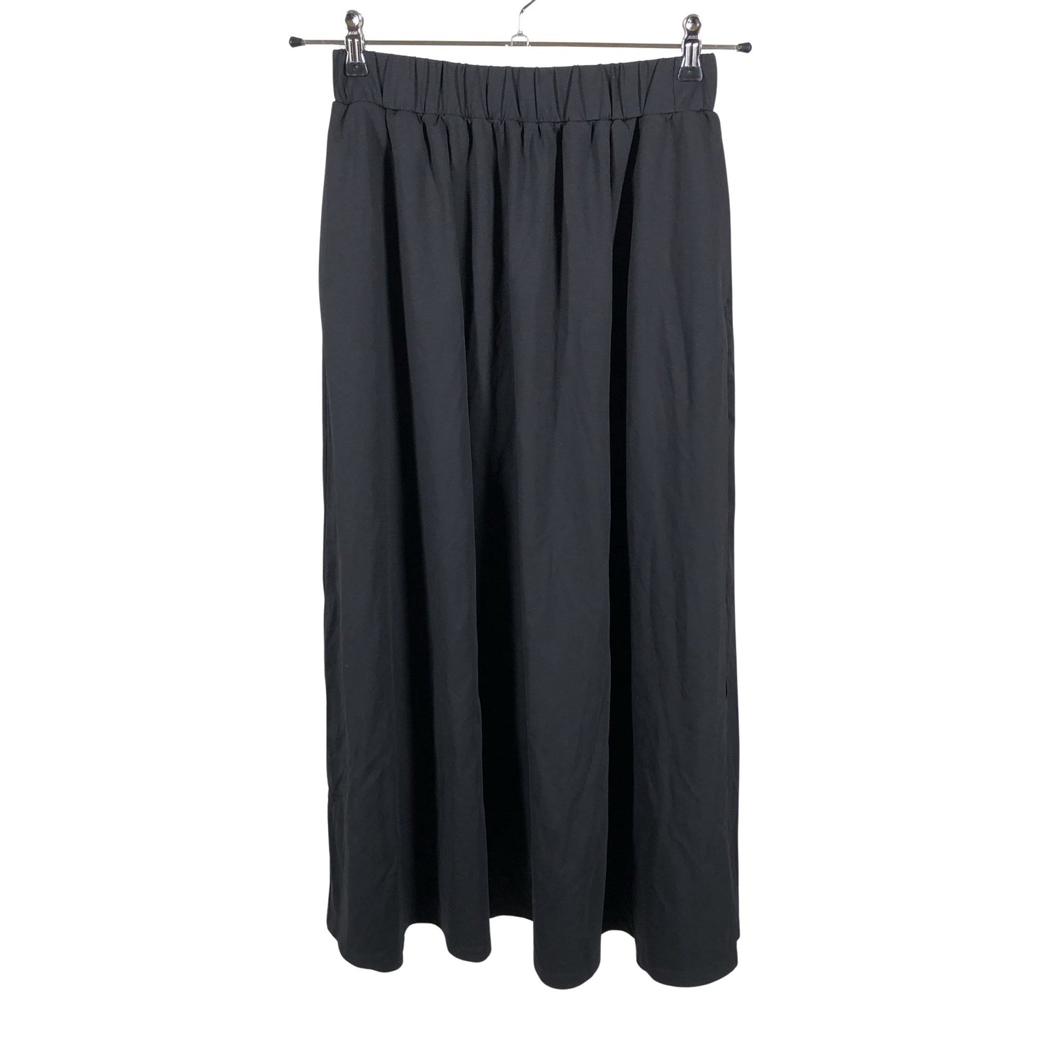 Joustava vyötärö. Vaatteessa on taskut. Sivusaumassa on halkio.