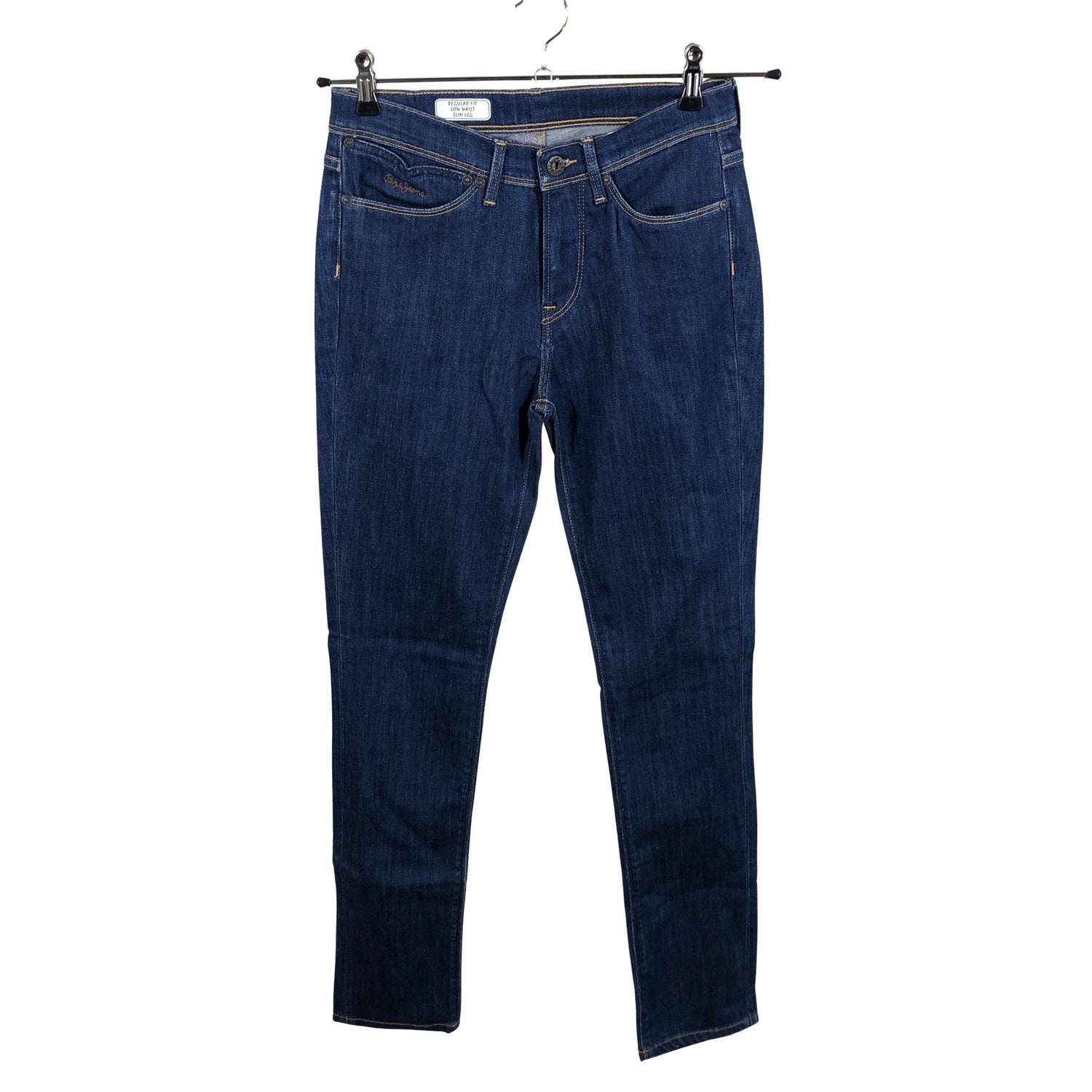 Malli: Regular fit, low waist, slim leg. Materiaali joustaa hieman. Tuotteen pinnassa on aavistus pesu-/käyttökulumaa. Yleisilme on siisti.