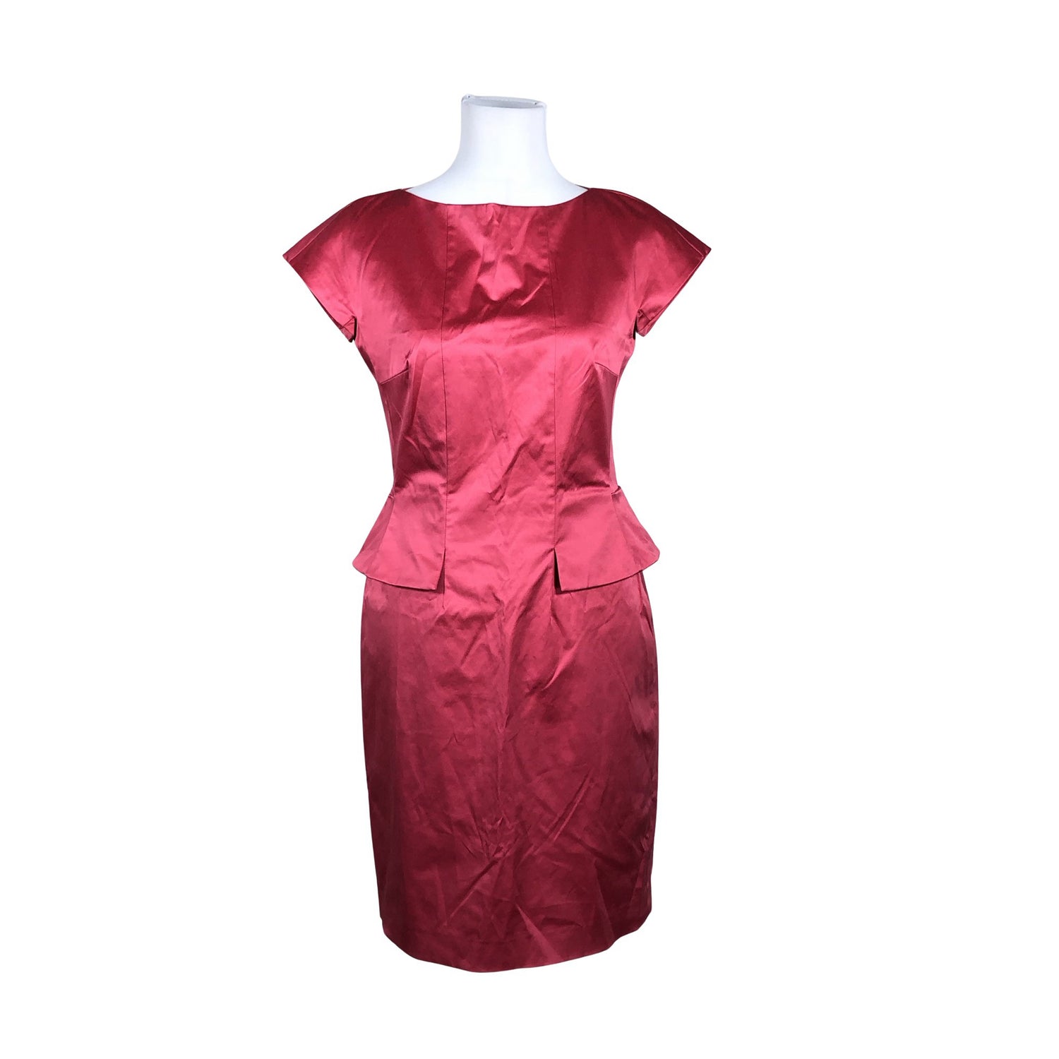 Langassa on kiiltoa. Vetoketju takana. Peplum-helma. Materiaali joustaa hieman. Arkeen ja juhlaan. Tuotteen pinnassa on aavistus pesu-/käyttökulumaa. Yleisilme on siisti.