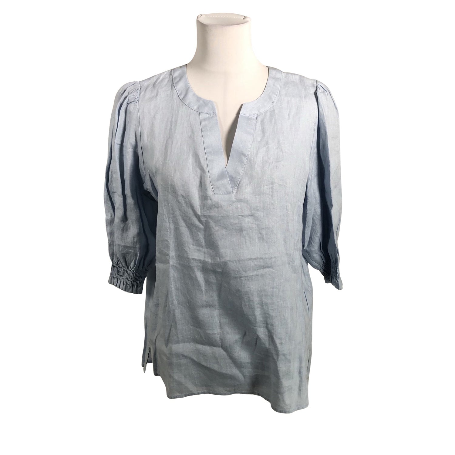 Sh# 99,90 €. Pellavaa. Sivusaumoissa on halkiot. Materiaali ei jousta.
